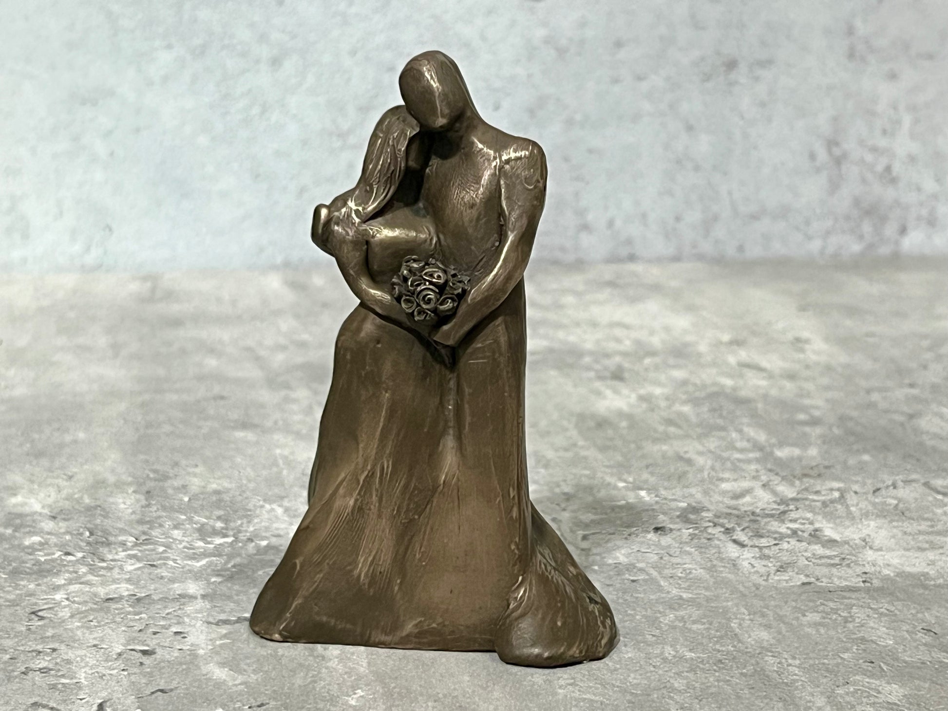 This 5” Bride & Groom Christmas ornament is inspired by my larger family sculptures and created with the same sculptural process. Each piece begins as an original clay sculpture, then is molded and cold-cast in your choice of Bronze, Copper, Aluminum, or Antique White (faux ivory). Every ornament is finished by hand in my studio to create a beautiful, heirloom-quality keepsake.